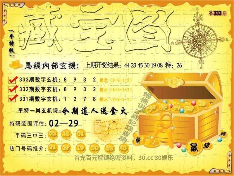 333期:平特藏宝图玄机:【今期道人送金火】 解:今期道人送金火,解鸡,平特鸡 推荐平码:21.27.19.30.28.40 开奖结果:43.31.36.11.37.27T06 |